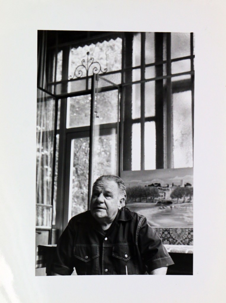 Henry Graham Greene was an English writer and journalist regarded by many as one of the leading novelists of the 20th century. Photo of him taken being interviewed by Gloria Emerson in his home in Antibes for Rolling Stone 1978, March Issue. Silver Gelatin Print (Resin), size 5 1/2 by 8 on 7 by 9 3/8″, signed, titled, labeled and stamped.