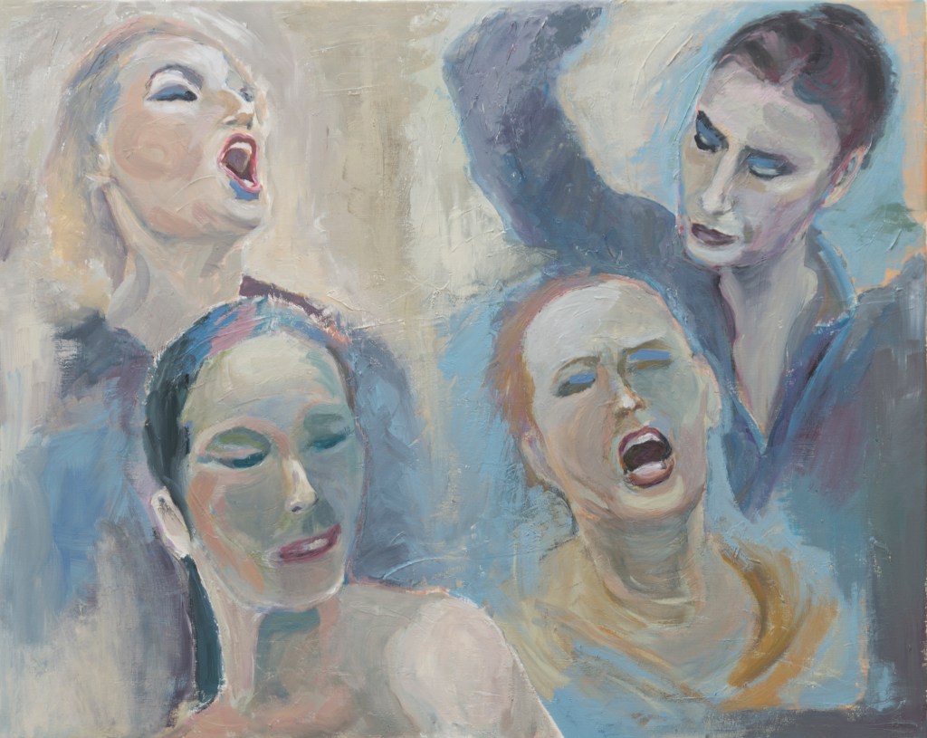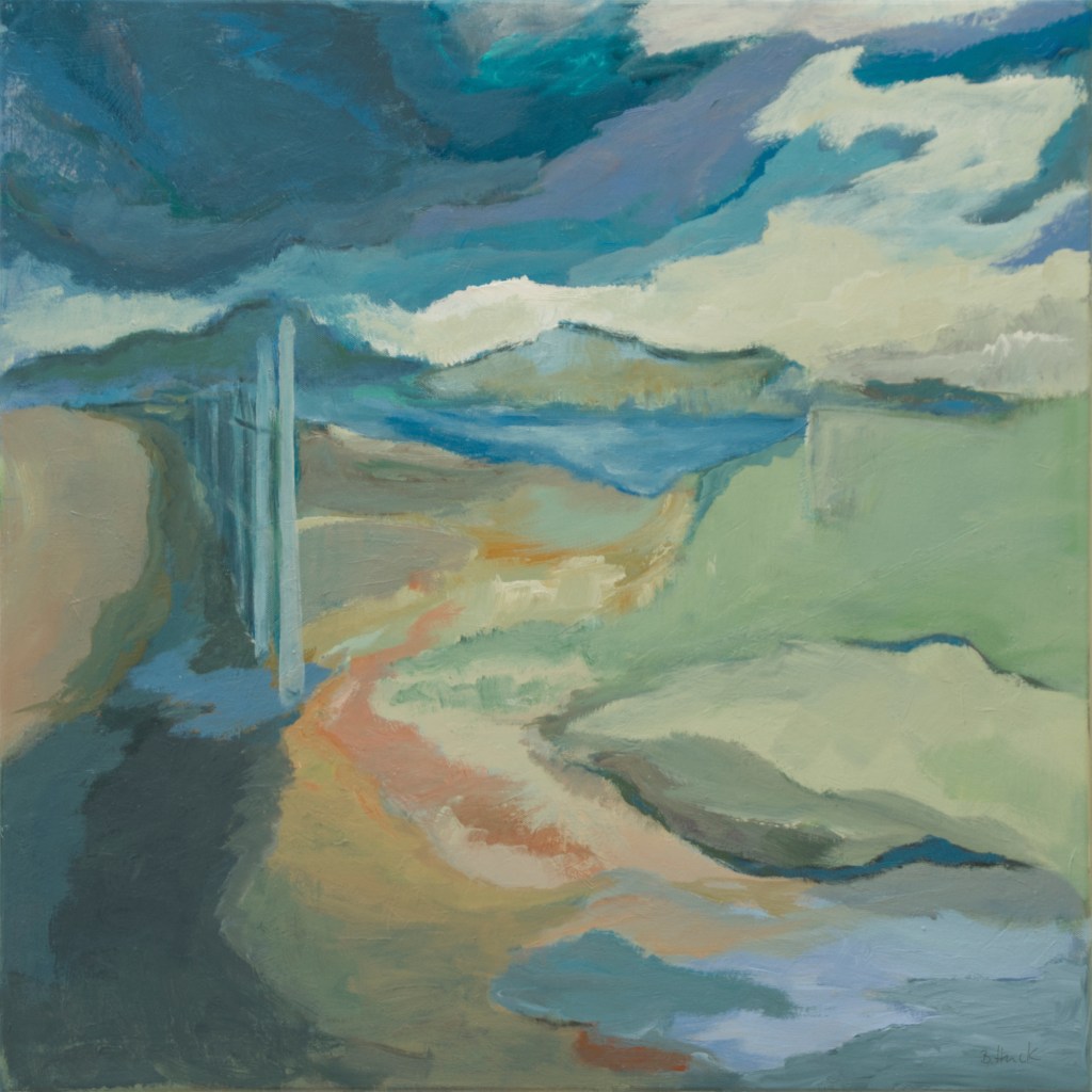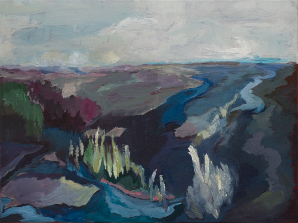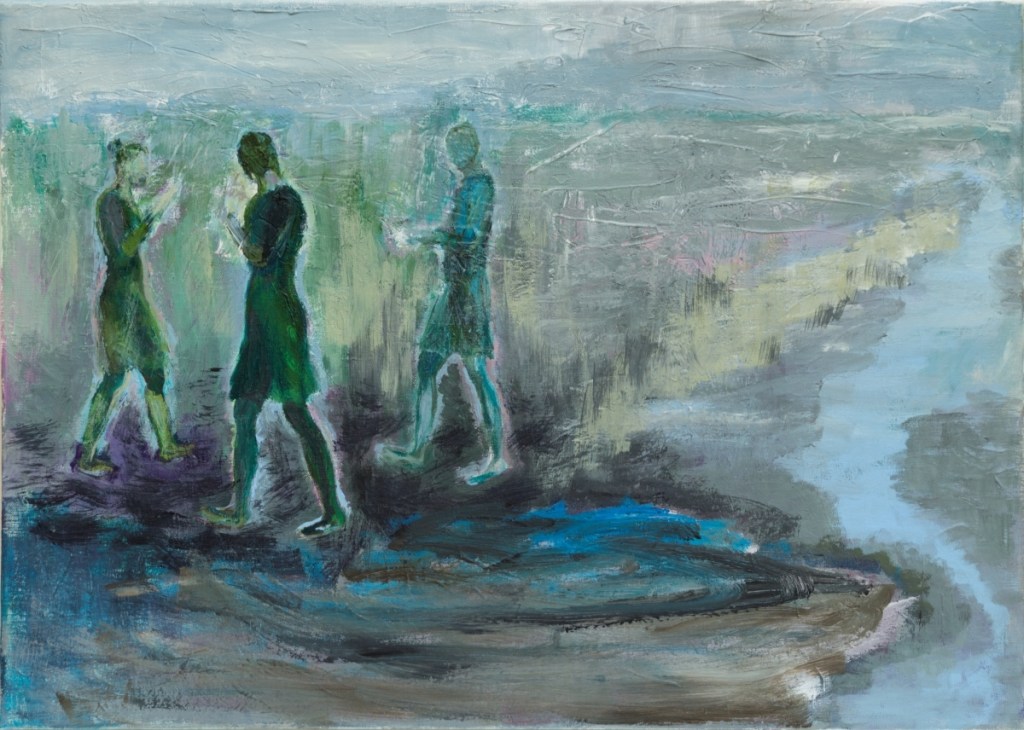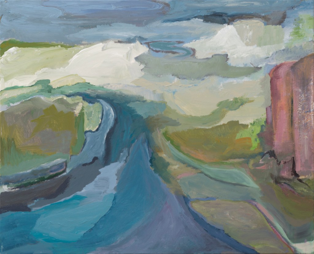 Her paintings principally are figurative – Space, landscapes , things and people are abstracted into different degrees. They are visualizing memories of places, city locations, rural areas, situations and events, which she either knows or has dreamed of.