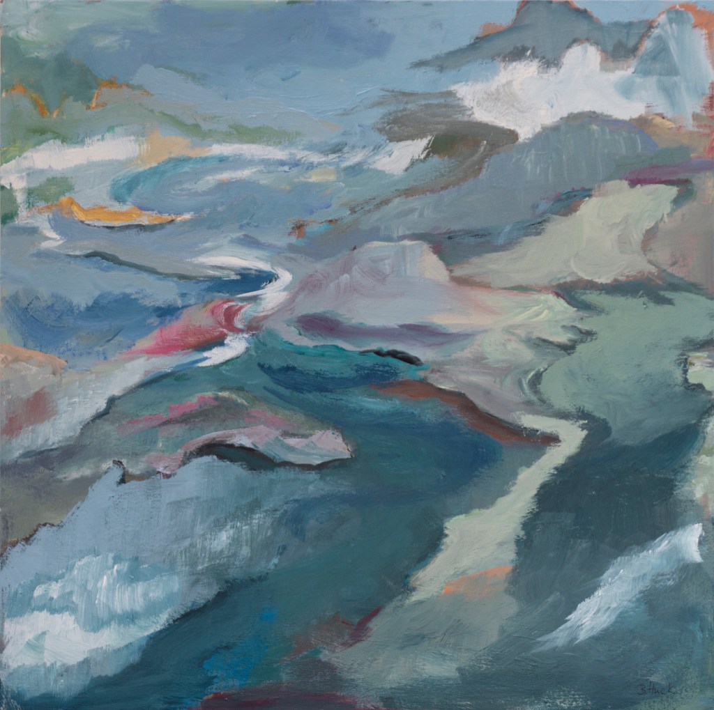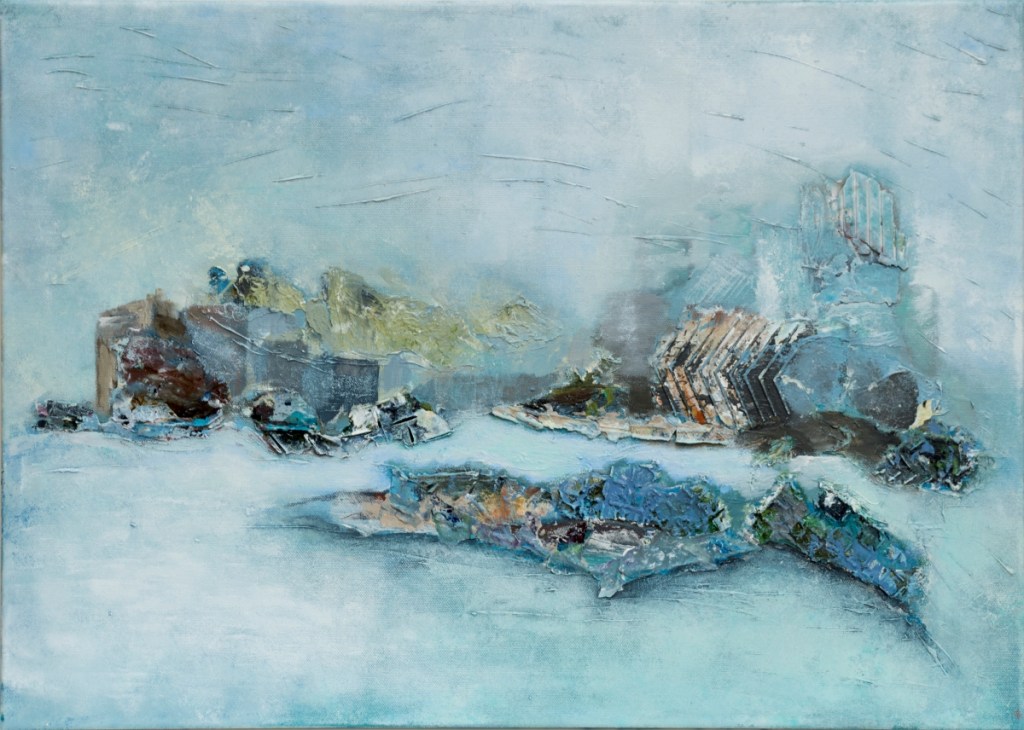 They reflect emotions and moods, occasionally a current theme. Rarely arise images without any object. Those she describes as etudes of the interaction of colors. Nothing is definite, shapes and lines and colors serve the purpose, to give a hint and inspire the viewer’s fantasy and imagination.