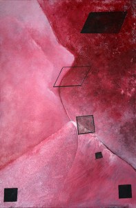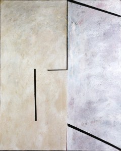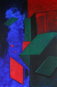 These paintings do not represent objects, they represent spaces that are occupied by light and stimulate the viewer to create representations of space, sometimes a three-dimensional space, sometimes the overlapping of two planes, and sometimes the blurriness of motion. Motion in space is the uncertainty as to where an object is. The object in motion is always beyond where you think it is. The space is blurred.